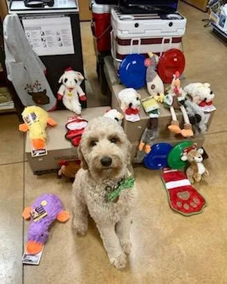 You will sometimes find him at the store, and he always loves to model for us for social media posts. He is such a great dog with such a good spirit!